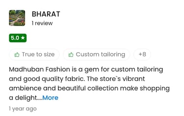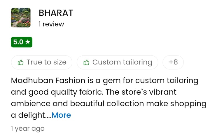 The variety and quality of clothes at Madhuban Fashion are unmatched. Always satisfied!